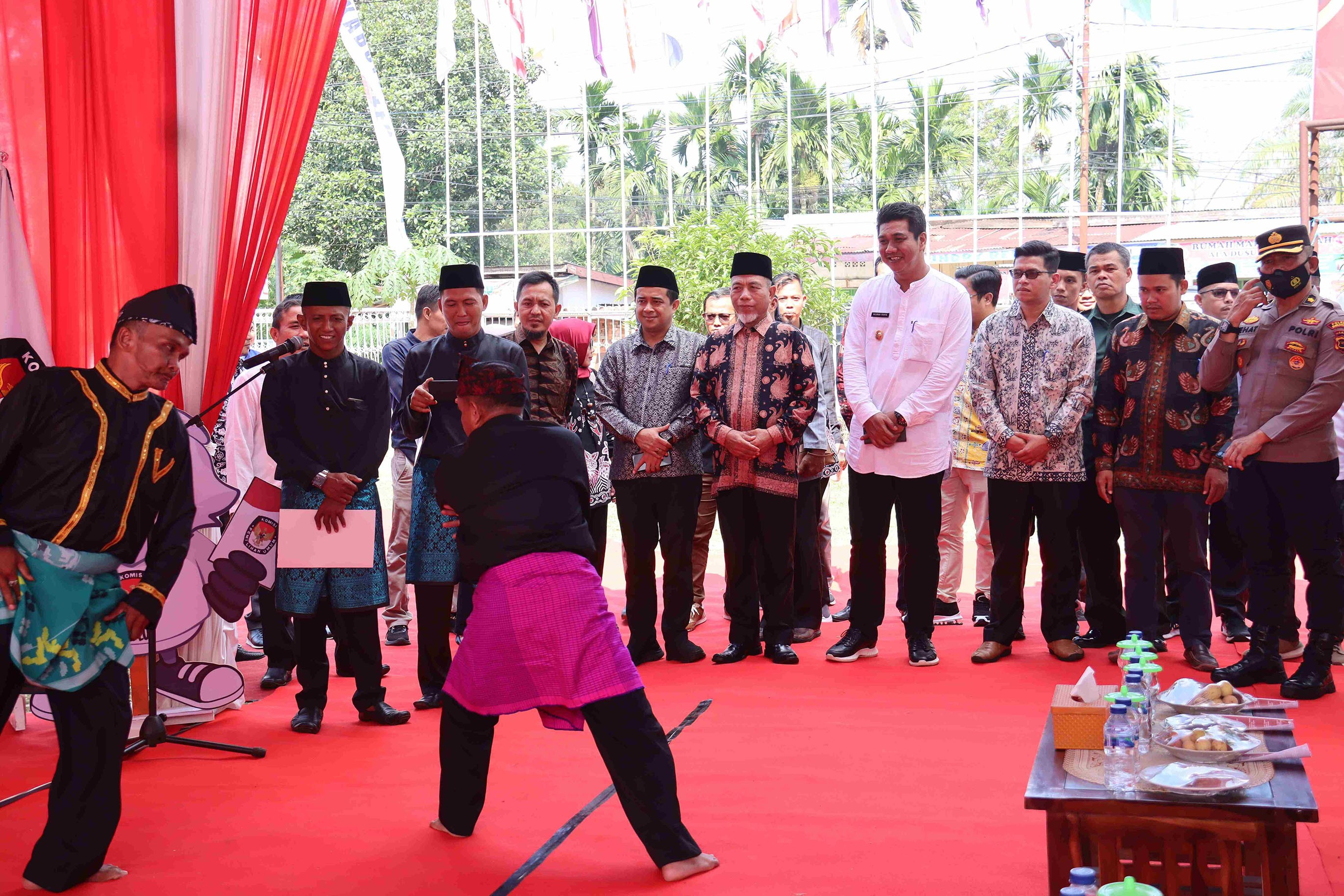 Tiba di lokasi, rombongan disambut meriah dengan kompangan dan pencak silat sebagai salah satu kekayaan budaya Merangin.