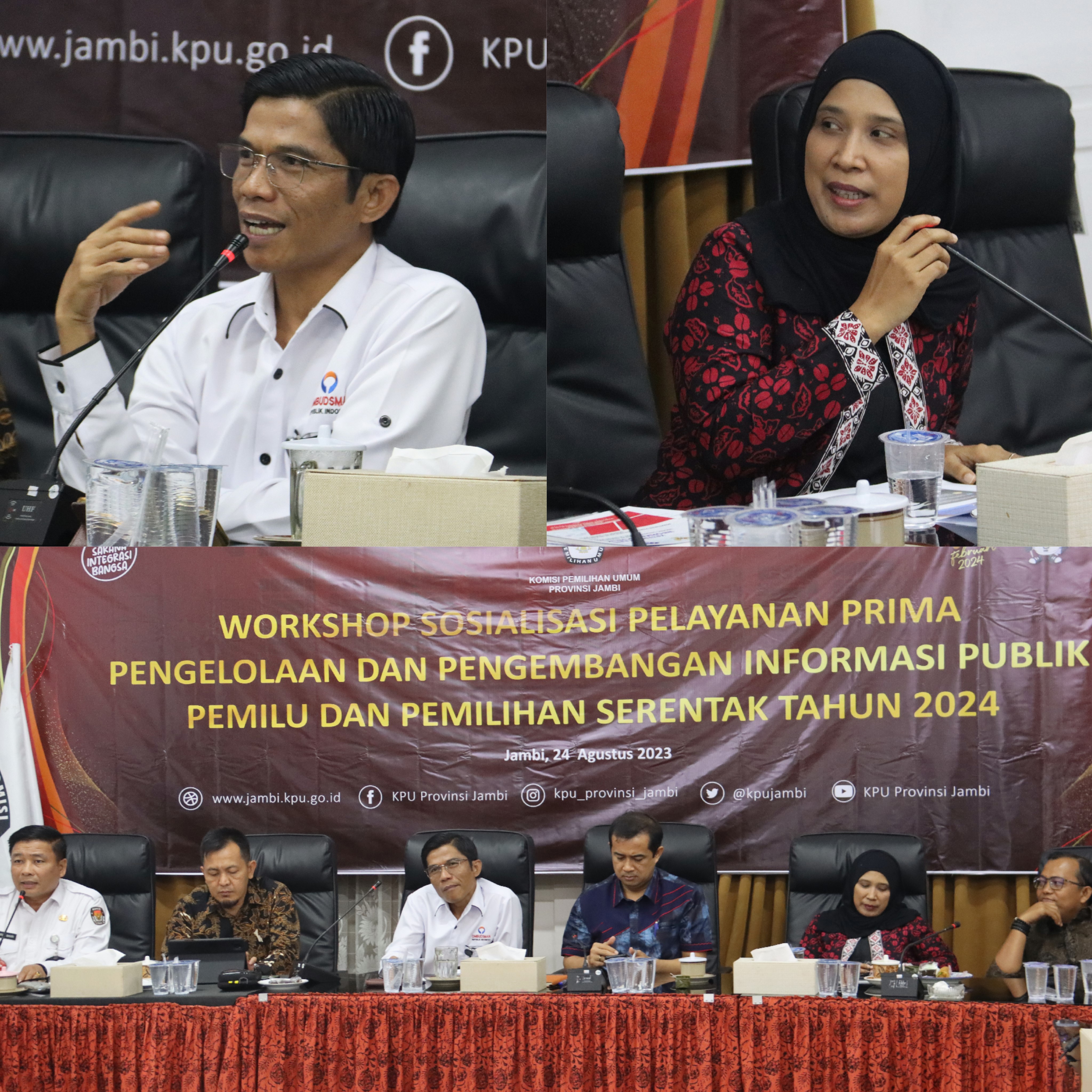 Untuk meningkatkan pemahaman yang lebih baik tentang pentingnya pengelolaan dan pengembangan informasi publik, KPU Provinsi Jambi menyelenggarakan Workshop Sosialisasi Pelayanan Prima Pengelolaan dan Pengembangan Informasi Publik Pemilu dan Pemilihan Serentak Tahun 2024 kamis (24/8) di Aula KPU Provinsi Jambi. Kegiatan ini dilaksanakan dalam upaya untuk menjalankan prinsip-prinsip demokrasi yang transparan dan partisipatif, serta mematuhi Undang-undang Keterbukaan Informasi Publik Nomor 14 Tahun 2008.
