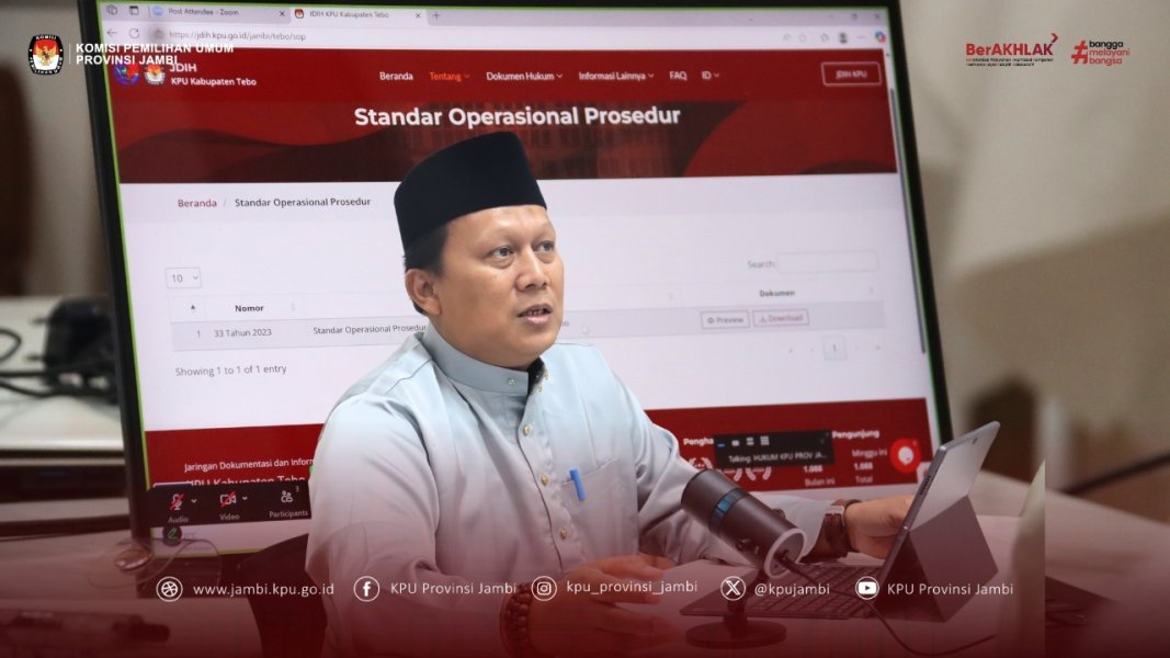 “Inilah dasar hukum yang menguatka kewenangan KPU Provinsi Jambi menerbitkan produk hukum yang sifatnya administrasi dalam hal ini keputusan KPU Provinsi Jambi,” jelas Suparmin.Selain ketentuan PKPU 15/2015 KPU Provinsi Jambi juga memperhatikan Surat Dinas Ketua KPU RI Nomor 945/PW.01/11/2021 tanggal 13 Oktober 2021 perihal Pembentukan Satuan Tugas Unit Pengendalian Gratifikasi di Lingkungan KPU Provinsi dan KPU Kabupaten/Kota Tahun 2021 dan Surat Edaran Ketua KPU RI Nomor 19 Tahun 2019 tentang Larangan Penerimaan Gratifikasi dan Pelaporan Gratifikasi di Lingkungan KPU.