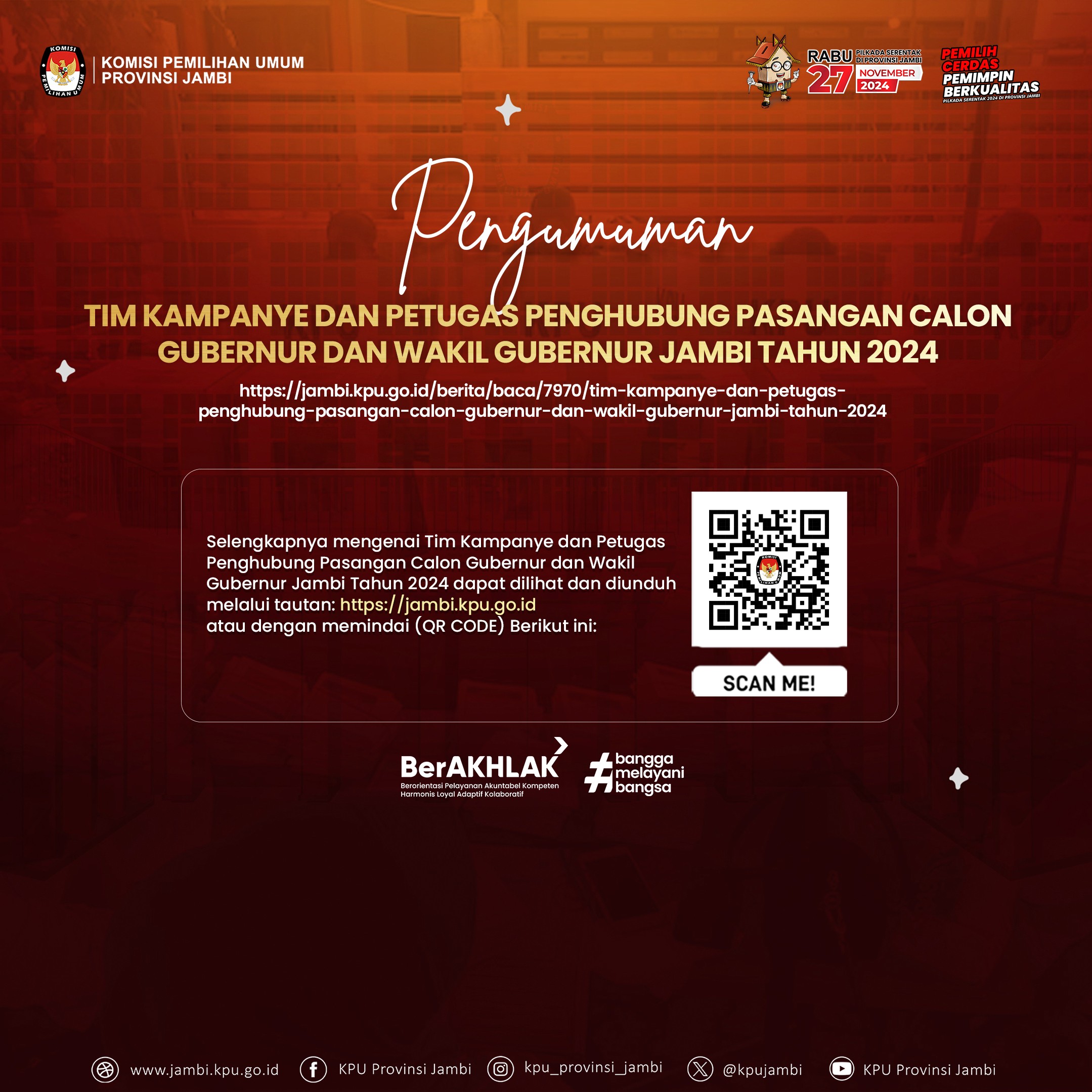 Selengkapnya mengenai Tim Kampanye dan Petugas Penghubung Pasangan Calon Gubernur dan Wakil Gubernur Jambi Tahun 2024 :
