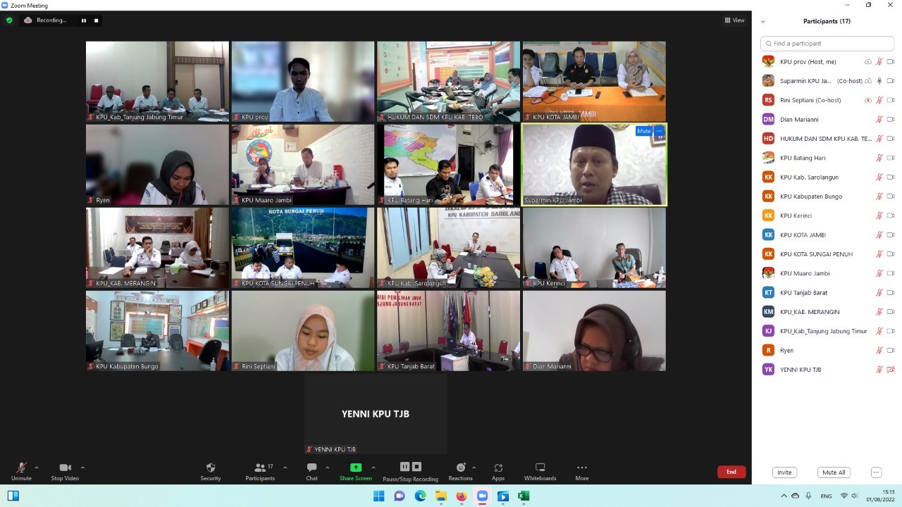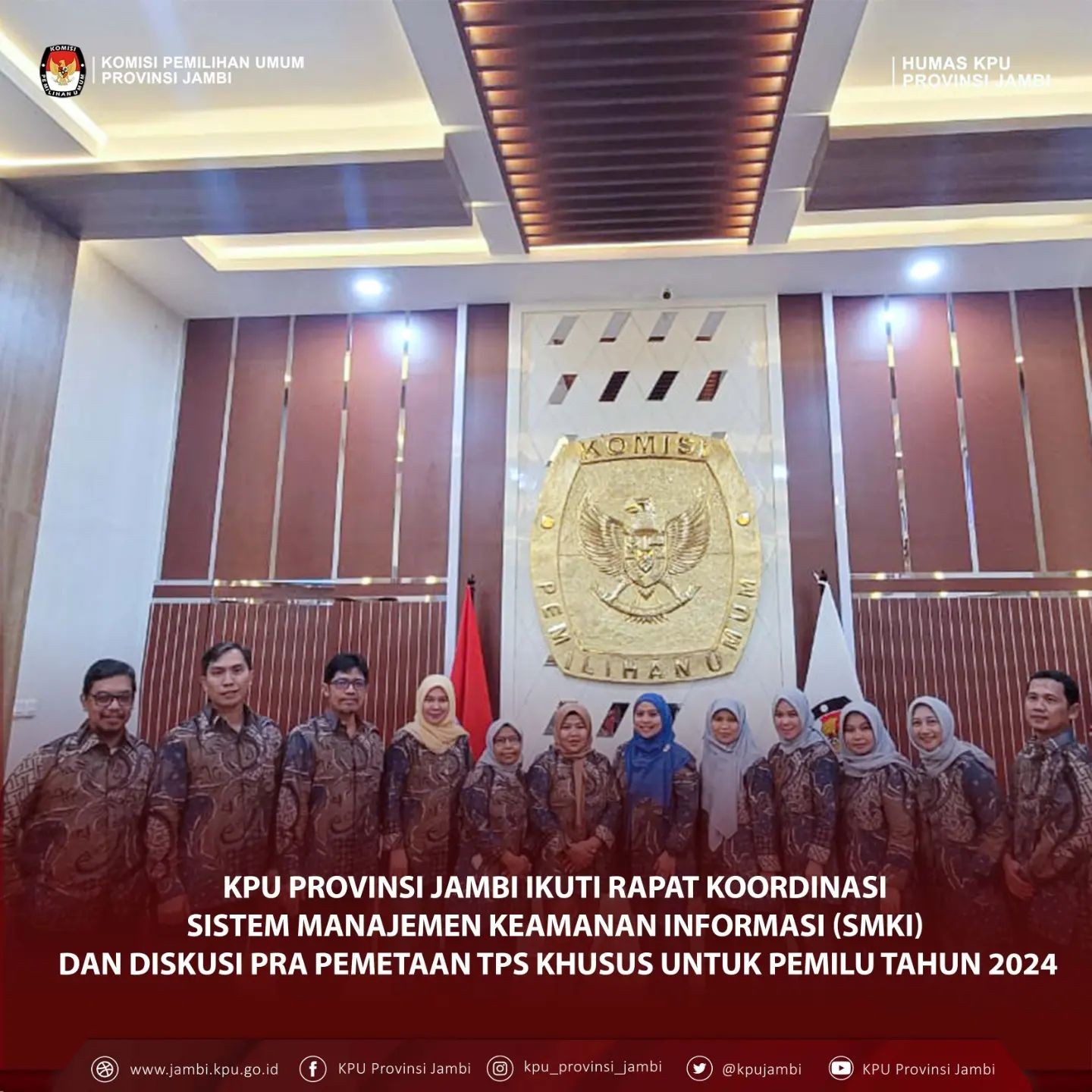 Divisi Perencanaan, Data dan Informasi KPU Provinsi Jambi Ahdiyenti dan Kasubbag Data dan Informasi Abdul Aziz mengikuti Rakor dalam rangka sinkronisasi dengan Data Penduduk Potensial Pemilih pemilu (DP4) untuk Pemutakhiran Data Pemilih Pemilu Tahun 2024 dengan agenda Rapat Koordinasi Sistem Manajemen Keamanan Informasi (SMKI) dan Diskusi Pra Pemetaan TPS Khusus Untuk Pemilu Tahun 2024 di Jakarta selama 3 (tiga) hari (13-15/10/2022).