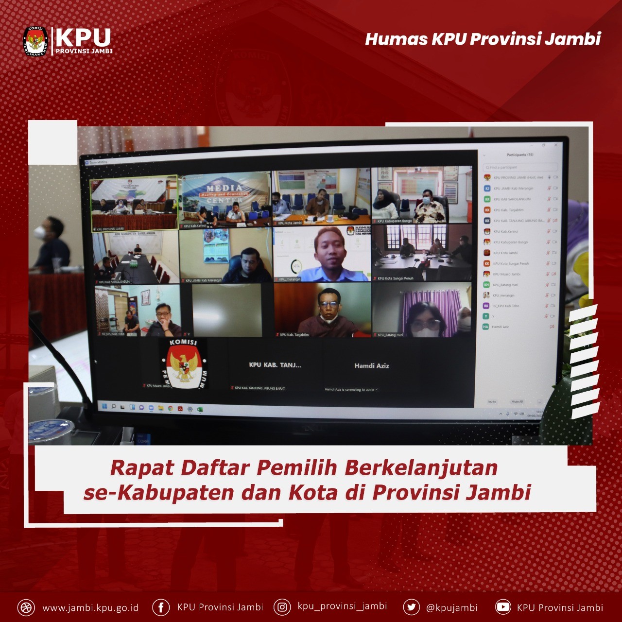 Jambi-Menindaklanjuti PKPU Nomor 6 Tahun 2021 tentang Pemutakhiran Data Pemilih Berkelanjutan (PDPB), KPU RI menggelar Rapat Koordinasi PDPB semester II Tahun 2021 tingkat nasional. Adapun peserta yang hadir pada agenda ini adalah Ketua beserta anggota dan Kepala Biro Pusat Data dan Informasi (Pusdatin) serta operator KPU RI, KPU/KIP Aceh Provinsi, Bawaslu Provinsi, DKPP, Partai Politik, serta Kementerian/Lembaga terkait. Rakor ini dilakukan via daring pada Kamis, (03/02/2022).
