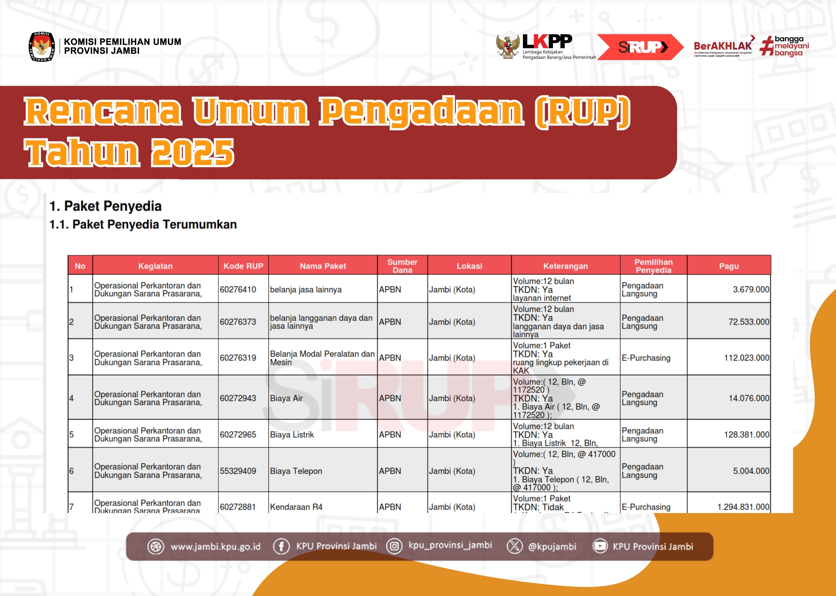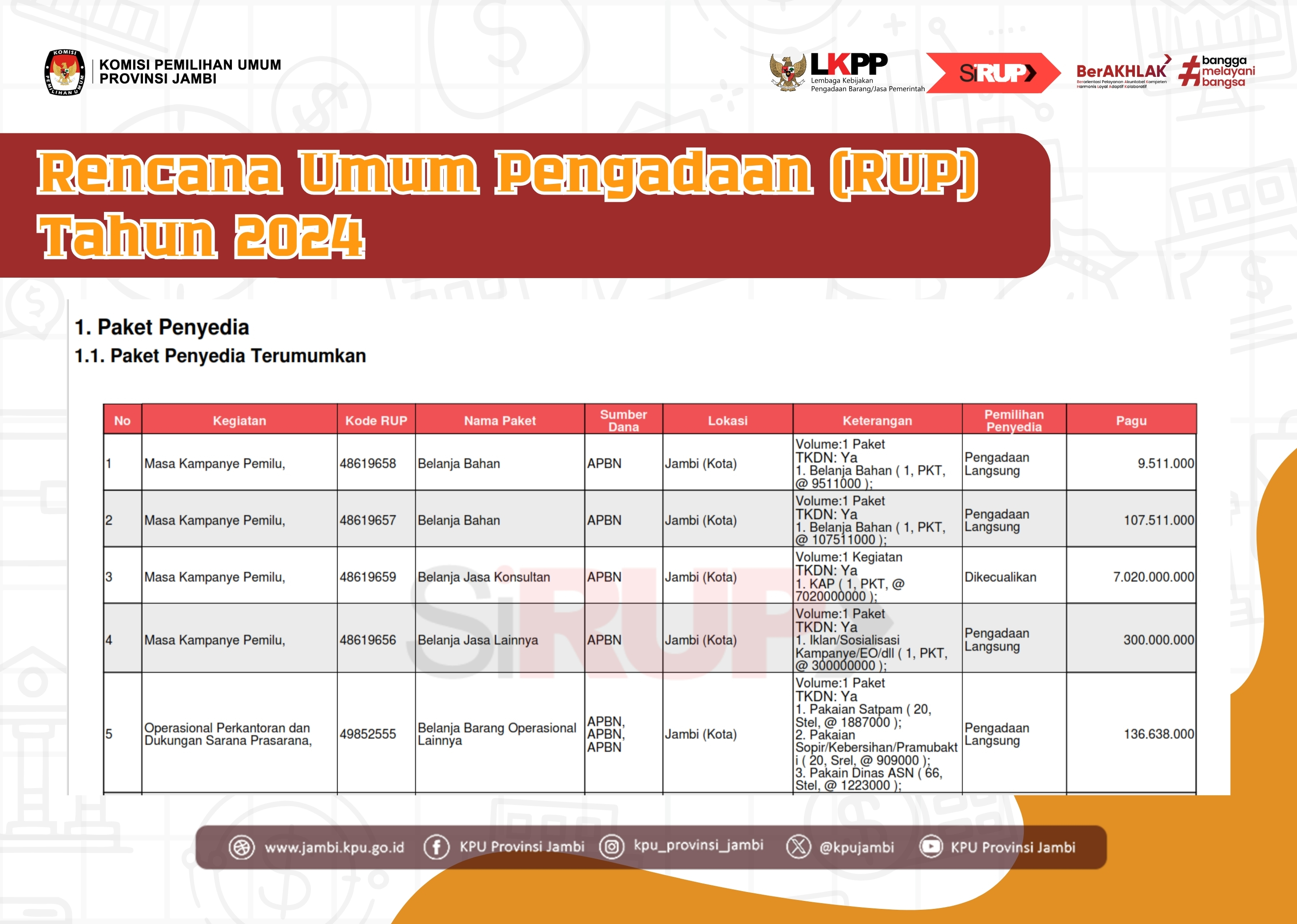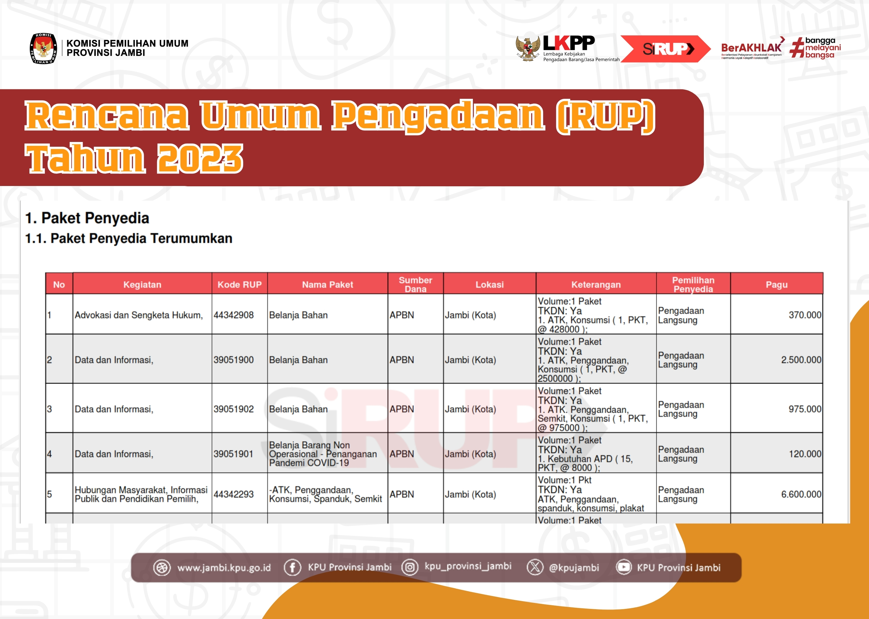 Rencana Umum Pengadaan (RUP) KPU Provinsi Jambi