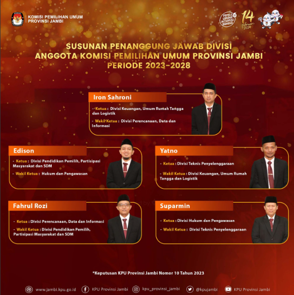 Susunan penanggung jawab Divisi Anggota KPU Provinsi Jambi Periode 2023-2028